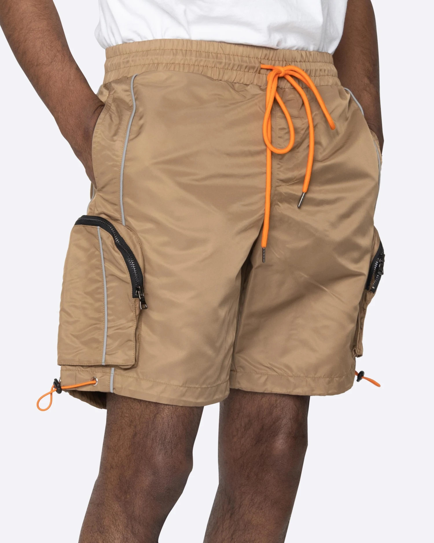 The short version of the 3M Triple Cargo pants. These shorts feature an adjustable waistband with drawstring and reflective piping through out. These were made for both the trails and the streets.