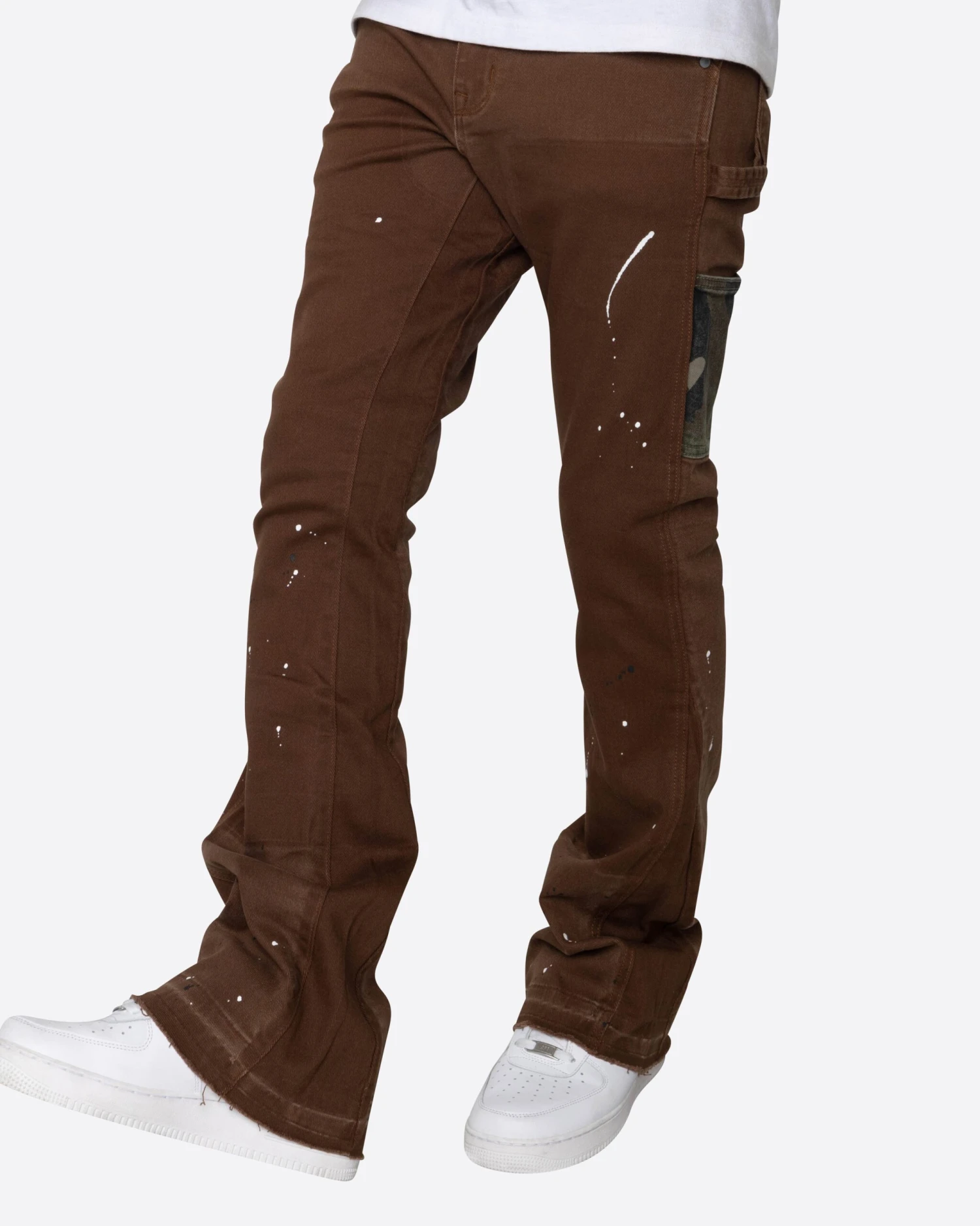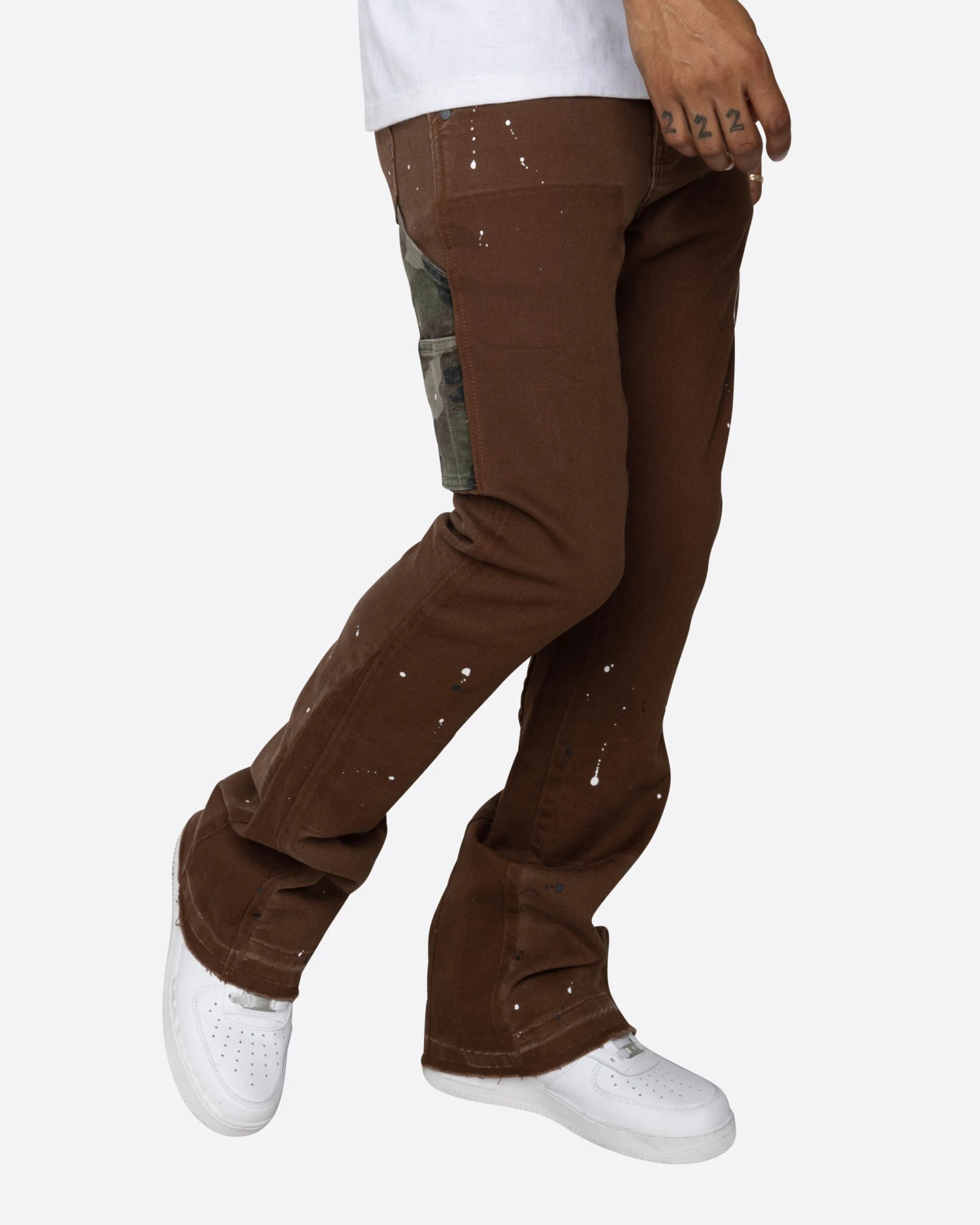 This quality denim is hand-finished for a unique look. Work pants panel is removed after wash for contrast wash areas, panelling at the inseam and side seam for a flare, paint splatter throughout, and finished with a released hem. You will love the comfort of this denim that has the look and feel of years of wear.