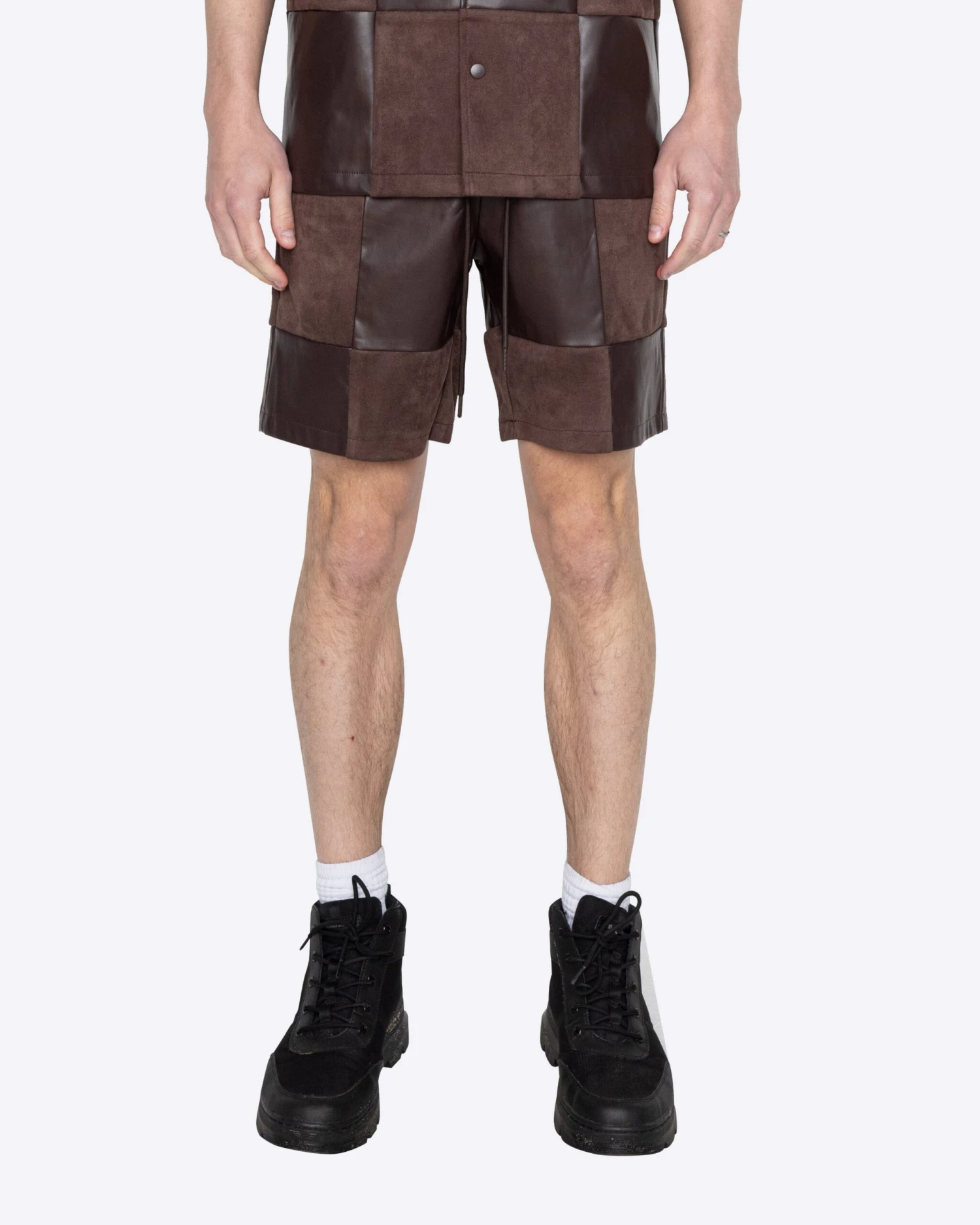 The vegan leather and suede Checker Shorts is next in your rotation. Pair it with the matching shirt for the fit of the summer.