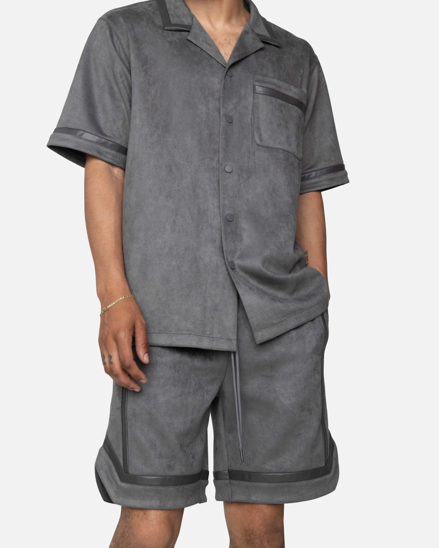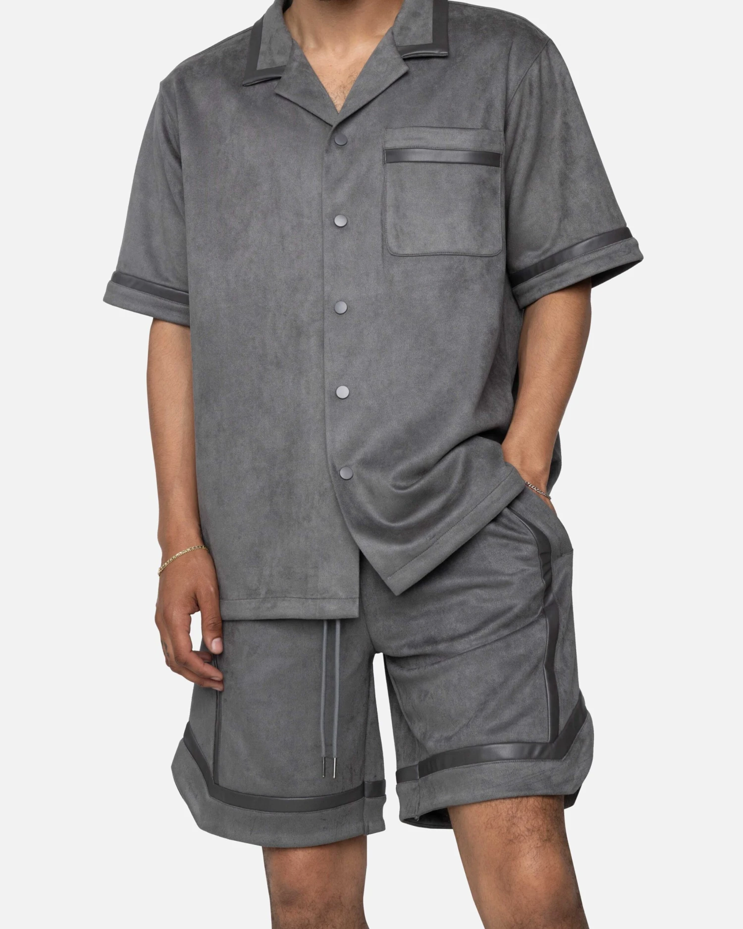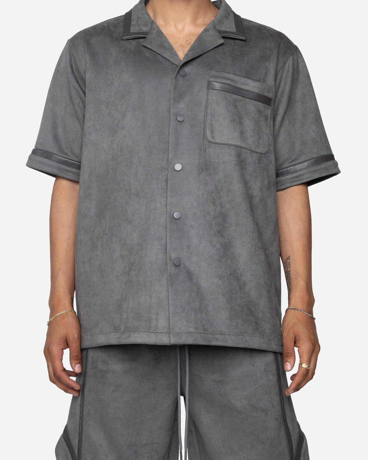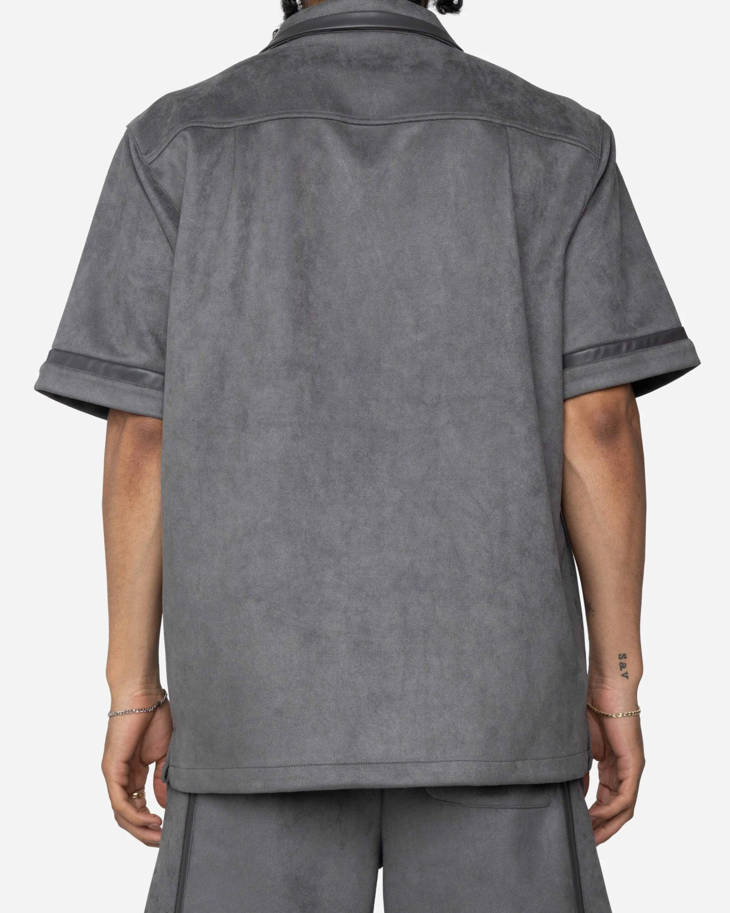 Keep it smooth with the Delta Shirt. Made with a vegan suede body and vegan leather trim, this is the perfect shirt for the summer heat.