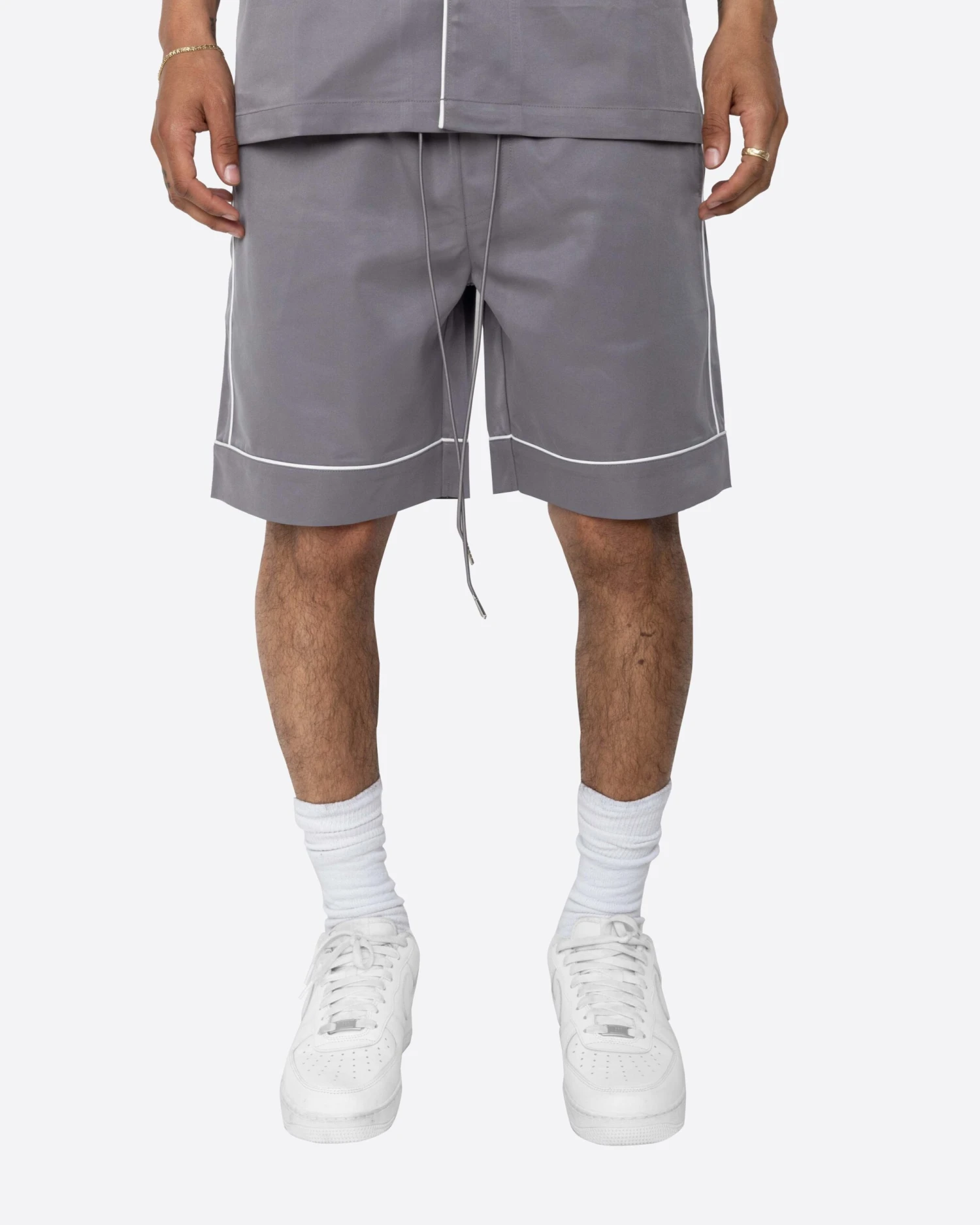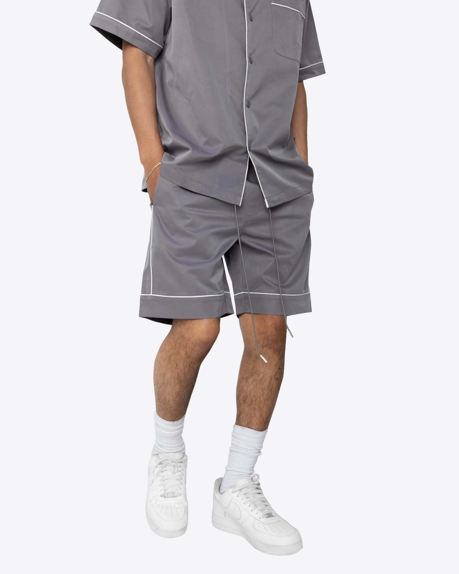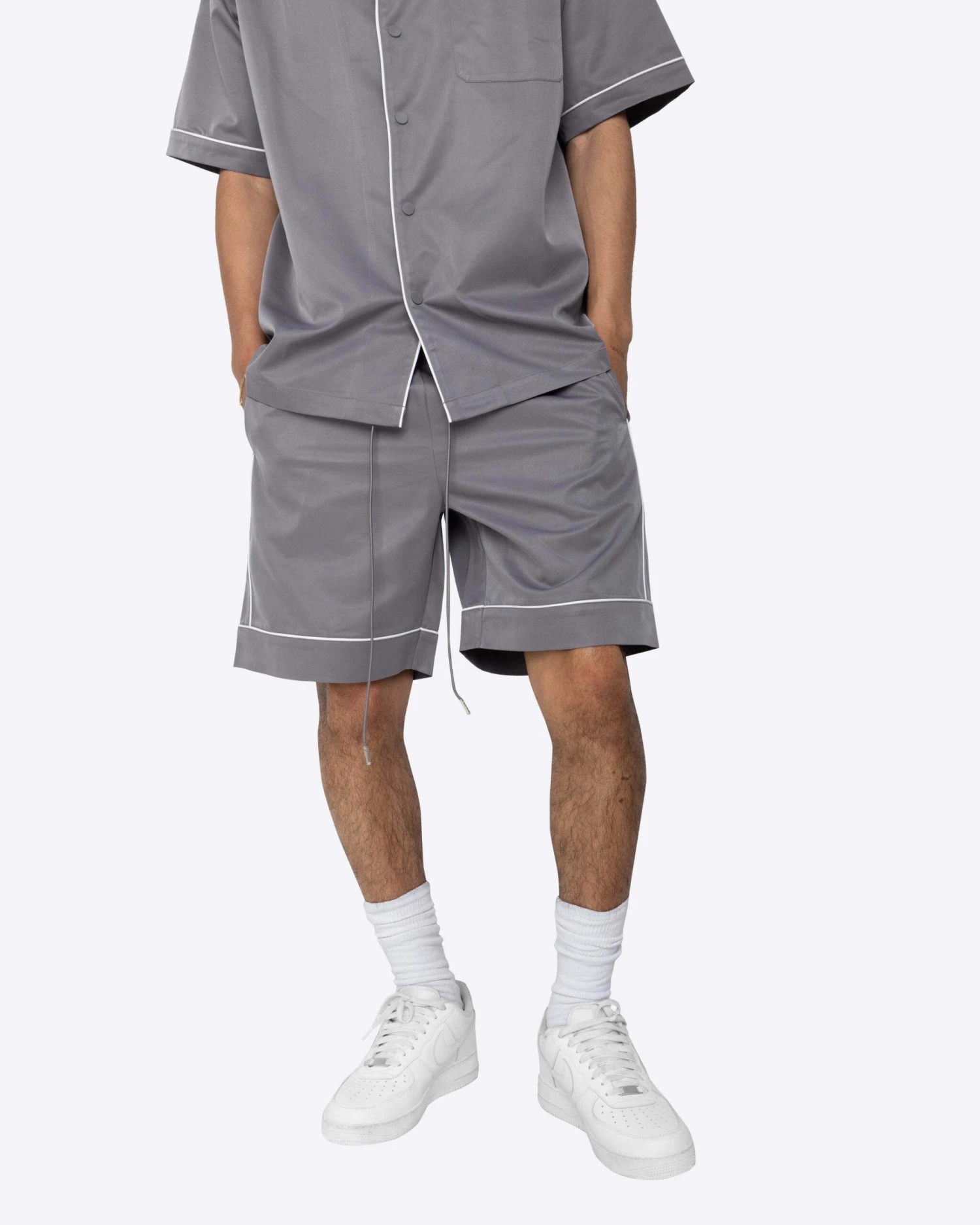 The Downtown Shorts are cozy and sleek at the same time. Made with a cooling nylon fabric and contrast piping, these are perfect for summer time lounging.