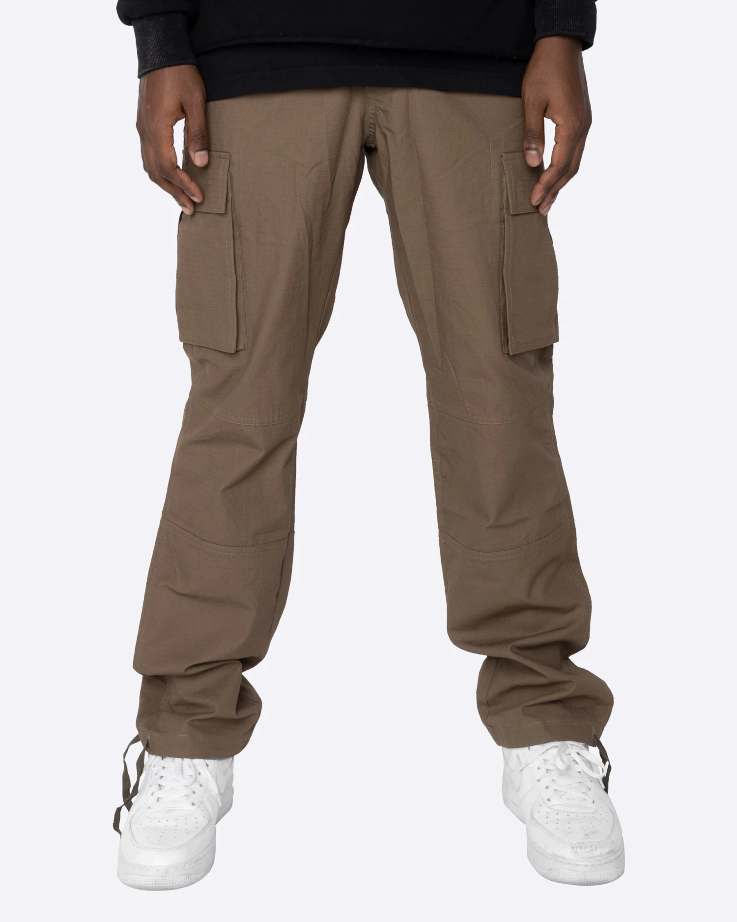 The Perfect Cargo. A Lightweight, relaxed fit cargo pants featuring subtle 3D pocket details and drawstrings at the angle for an adjustable cuff. Casual & Timeless.
