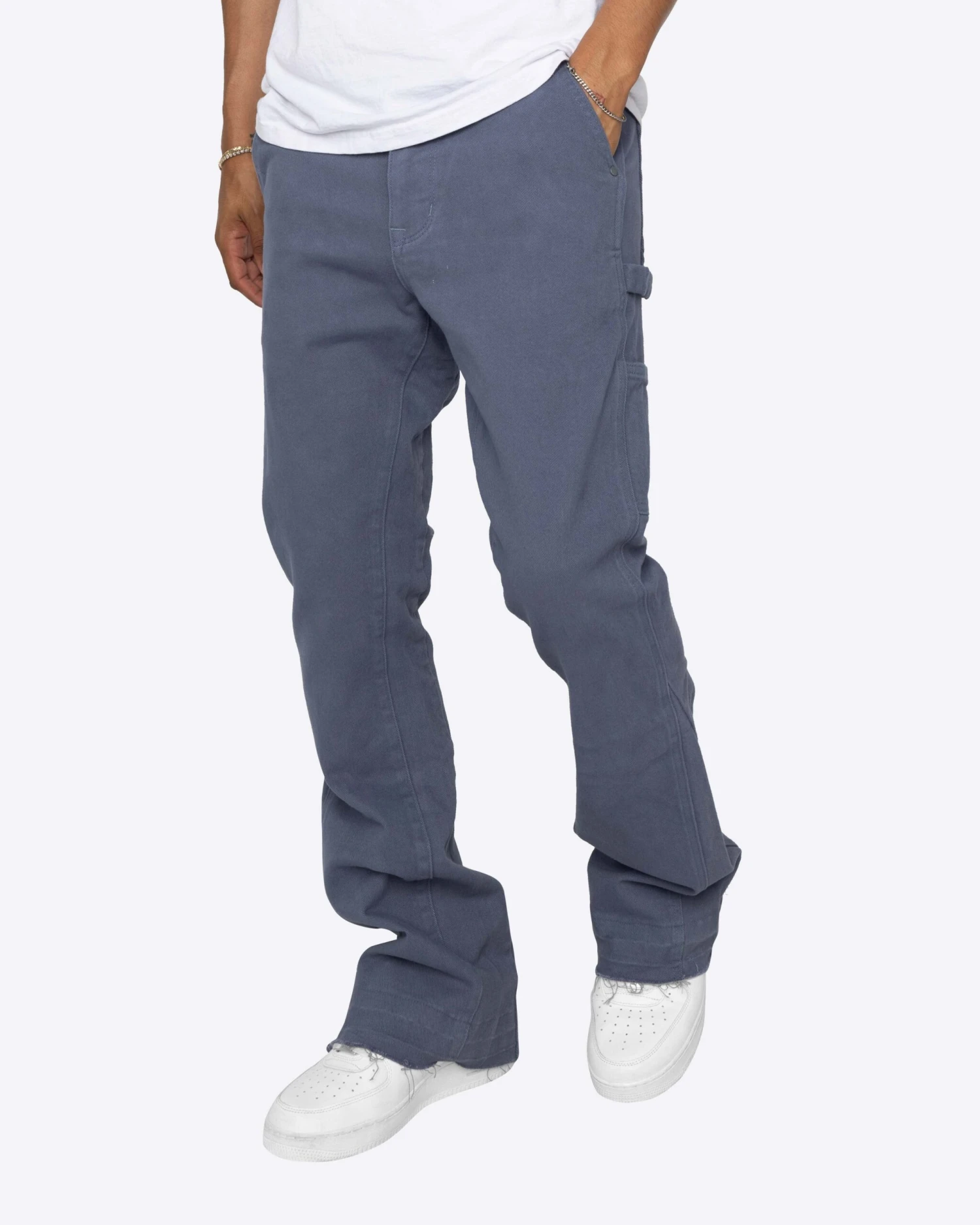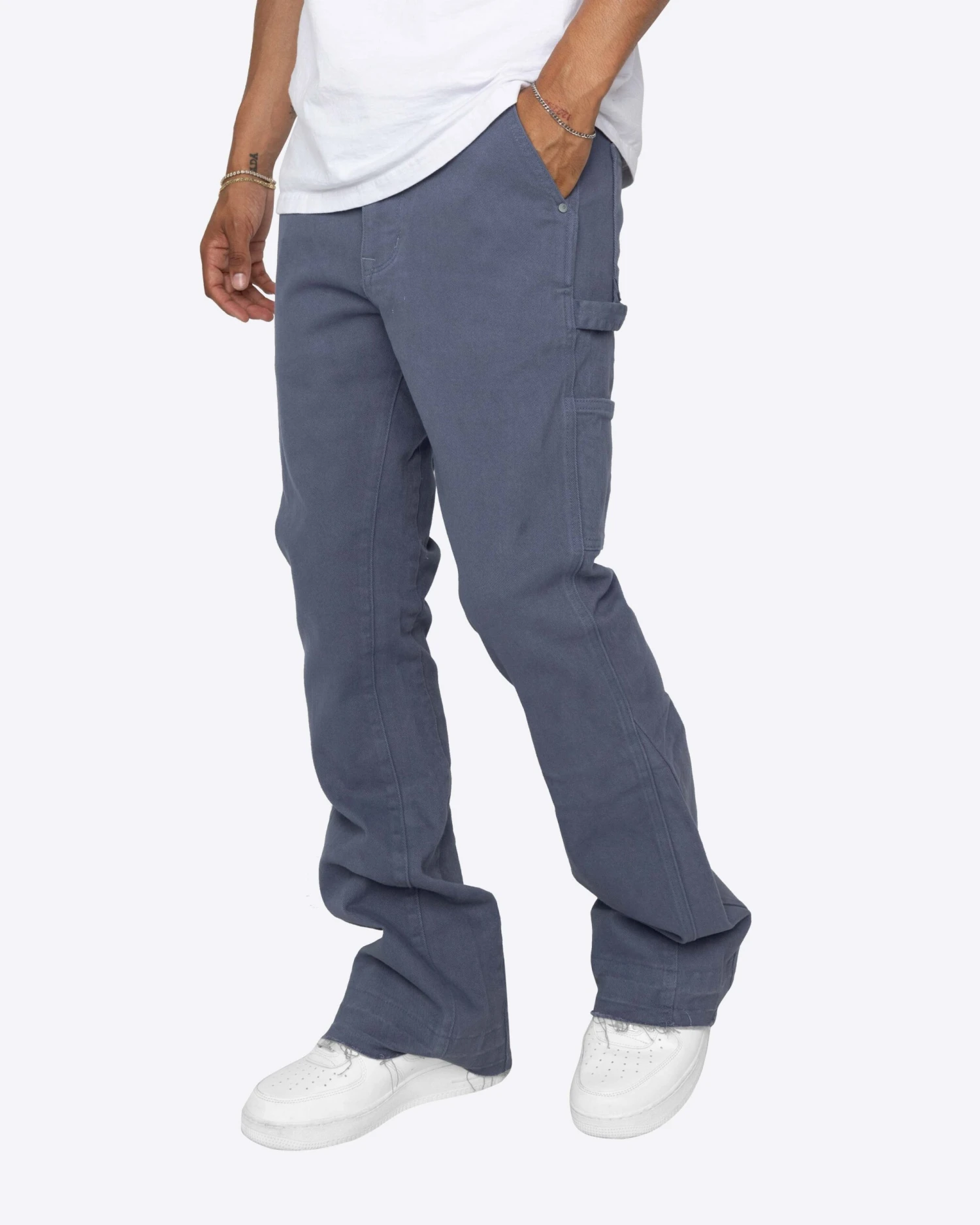 The Nine Flare Pants have carpenter details, paneling at the inseam and side seam, and a flare fit. These pants are washed, and finished with a released hem.