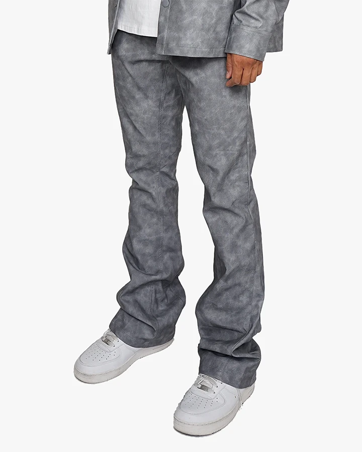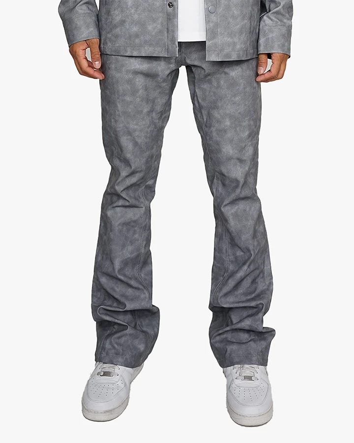 The Roadhouse Flare Pants features a flare fit with in inseam and outset panels. Made with a distressed look vegan leather, these pants are made for the fall.
