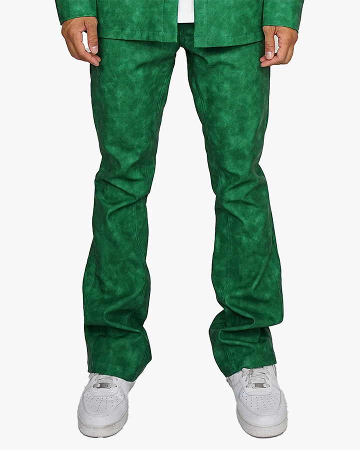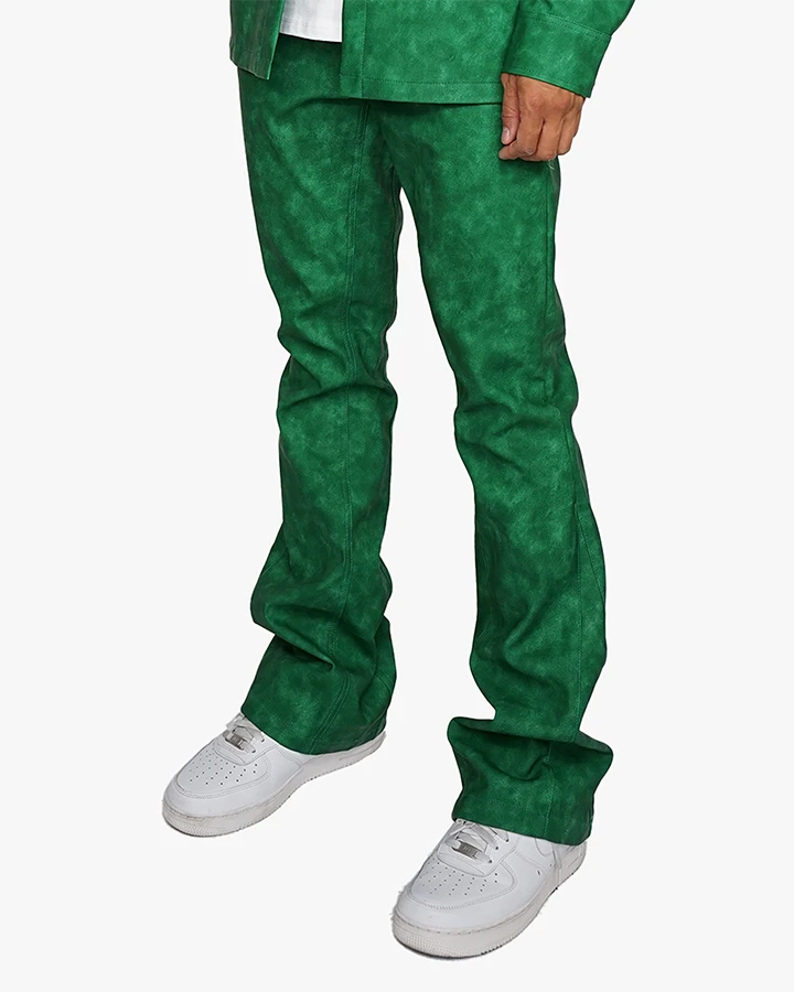 The Roadhouse Flare Pants features a flare fit with in inseam and outset panels. Made with a distressed look vegan leather, these pants are made for the fall.