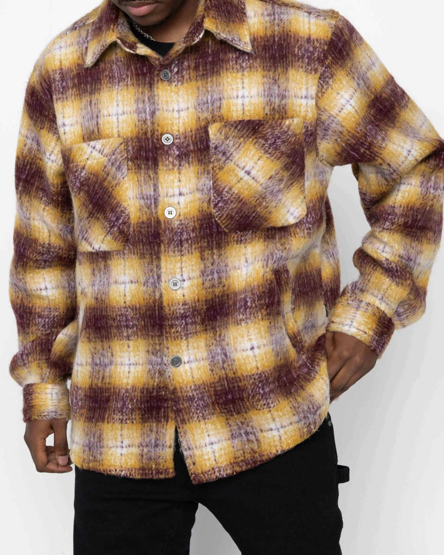The Slit Flannel Shirt is updated this cozy season with mohair fabric details in the same classic silhouette.