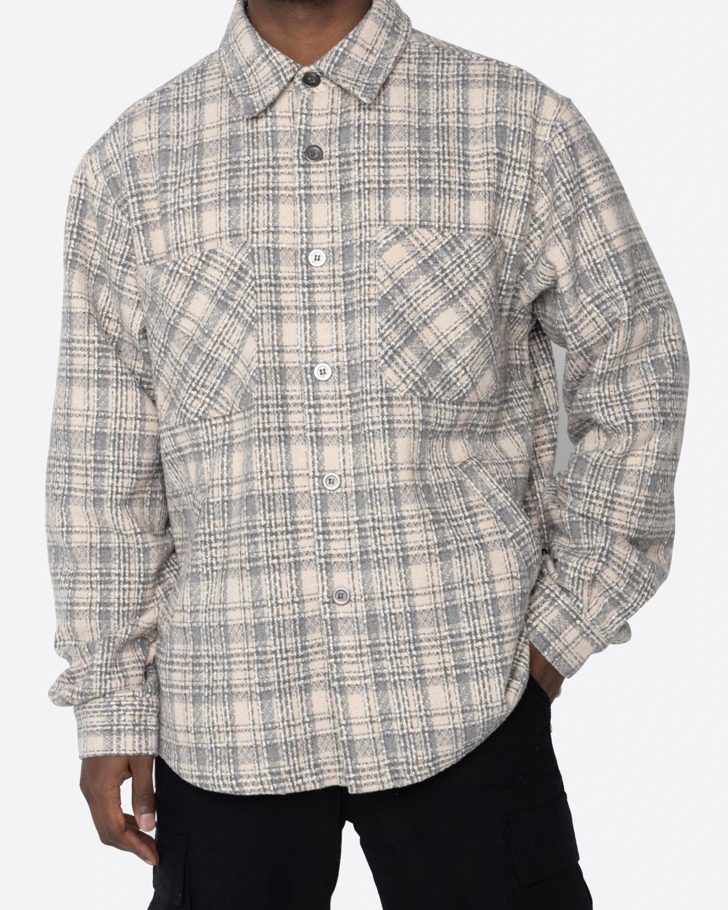 Our signature, heavy weight slit flannel. This slightly oversized flannel is perfect for wearing solo or layering over your favorite hoodie when it gets chilly. Featuring two chest pockets, two welt waist pockets, and side seam slit details.