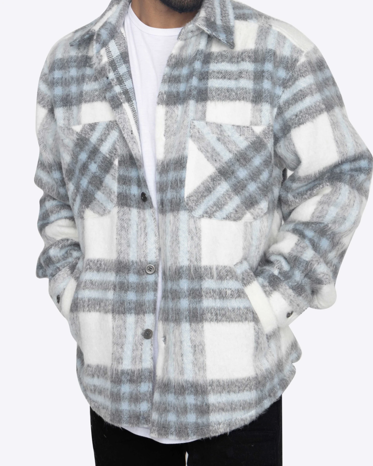 The Slit Flannel Shirt is updated this cozy season with mohair fabric details in the same classic silhouette.