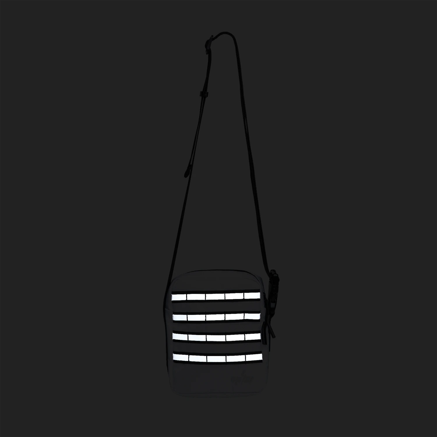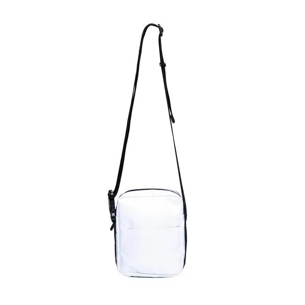 Reflective Taped Polyester Shoulder bag with an adjustable ‘EPTM’ custom webbed belt and buckle closure for a comfortable carry. It has backside pocket as well.