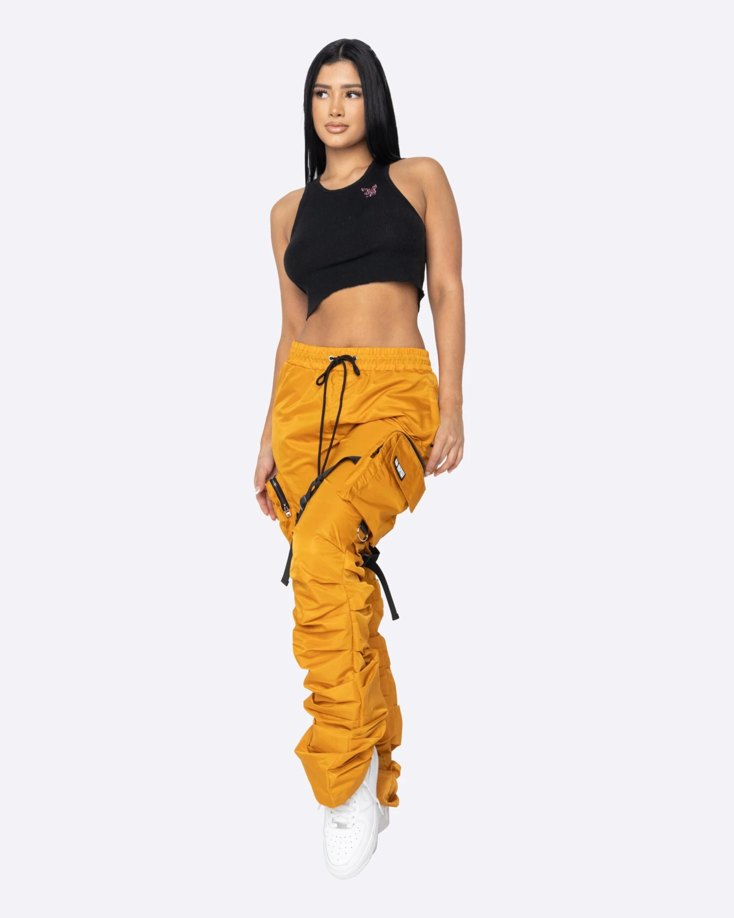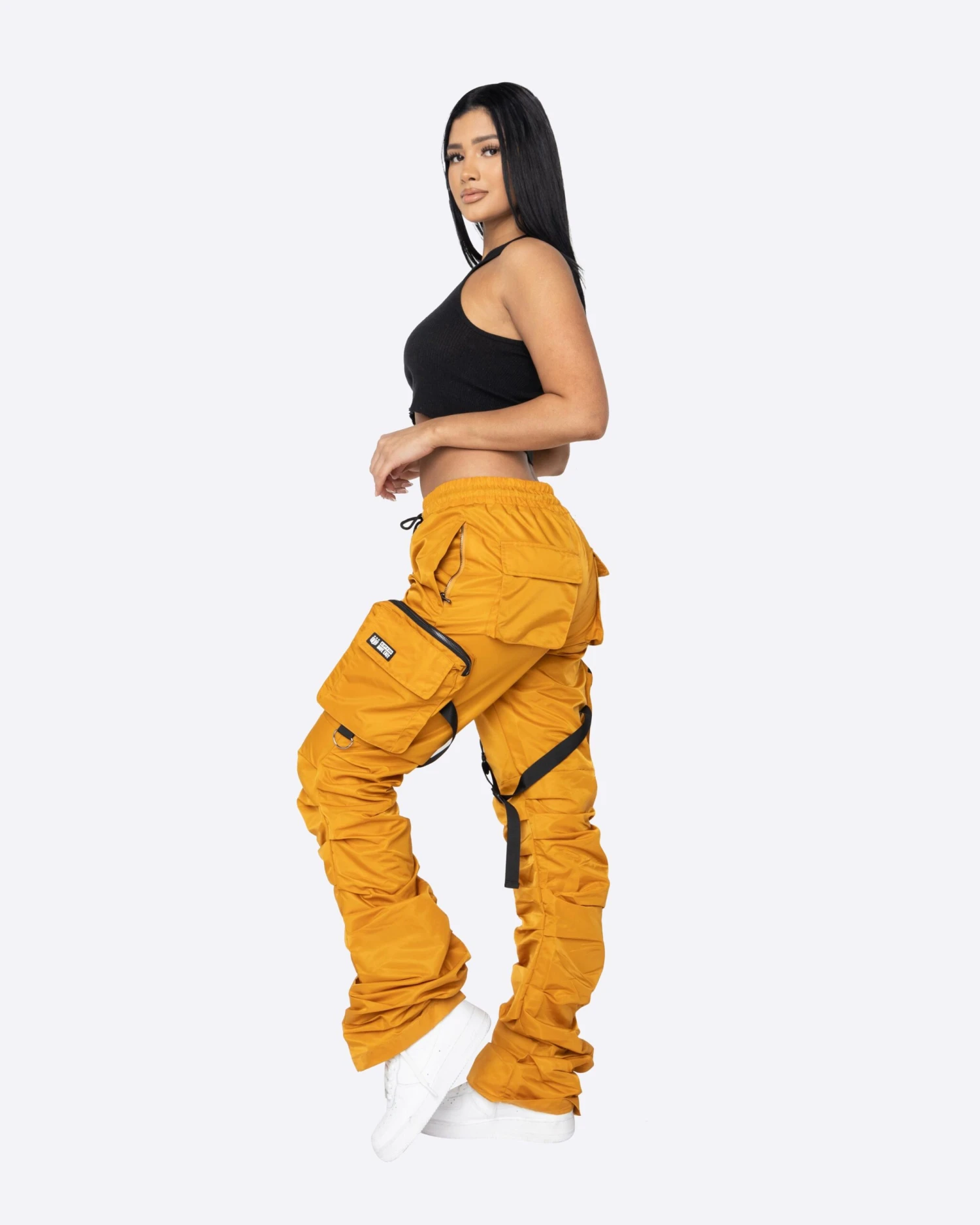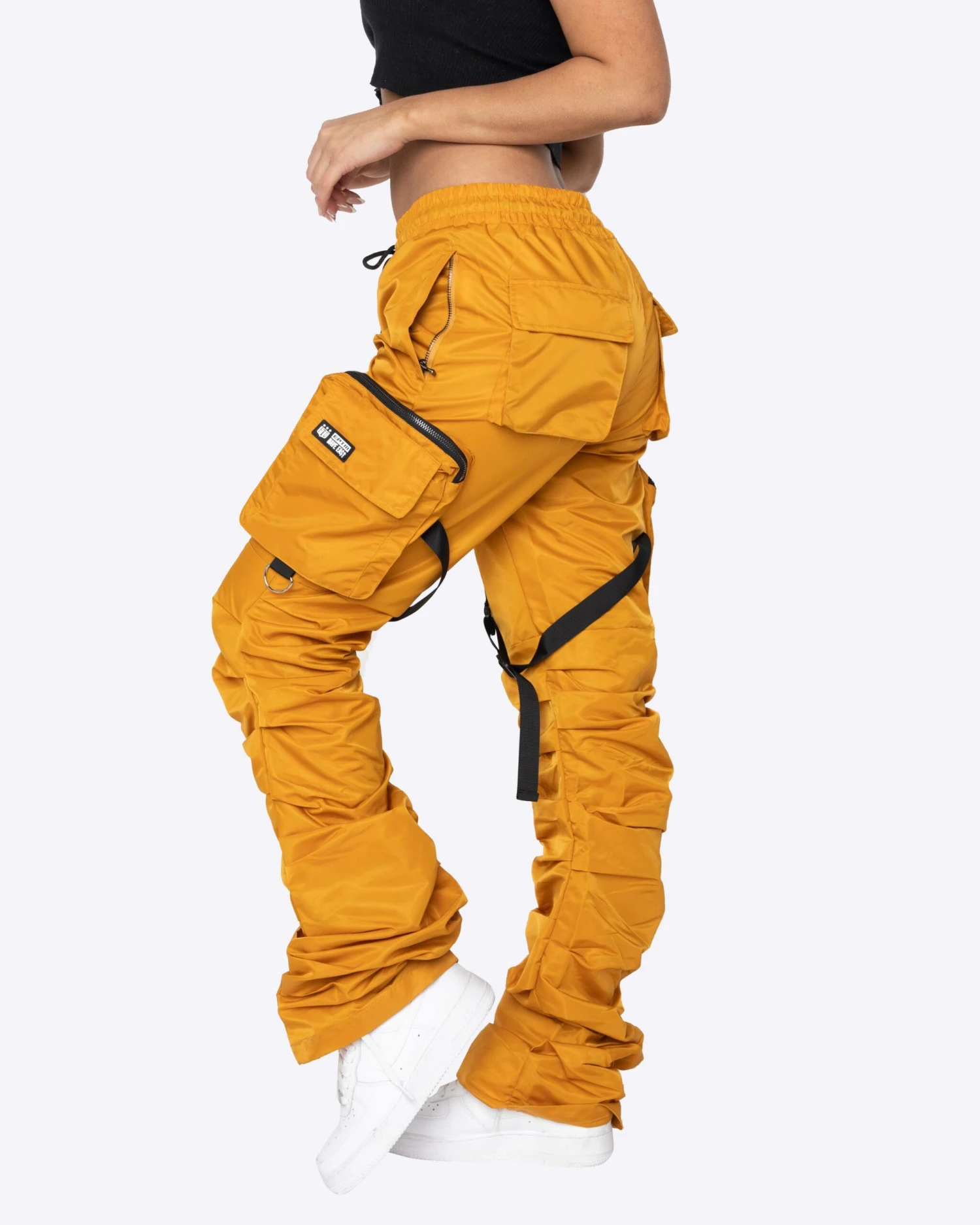 Version 2 of the Stacked Flare! We had to bring these back with a new twist. The Nylon Stacked Flare 2.0 features the same stack of the beloved original with new strap details and 3D Pocket placement. The elongated leg makes them naturally give you a stack effect without having to sag your waistband. Flared ankle gives emphasis to the flare and allows them to hang over sneakers and boots effortlessly.