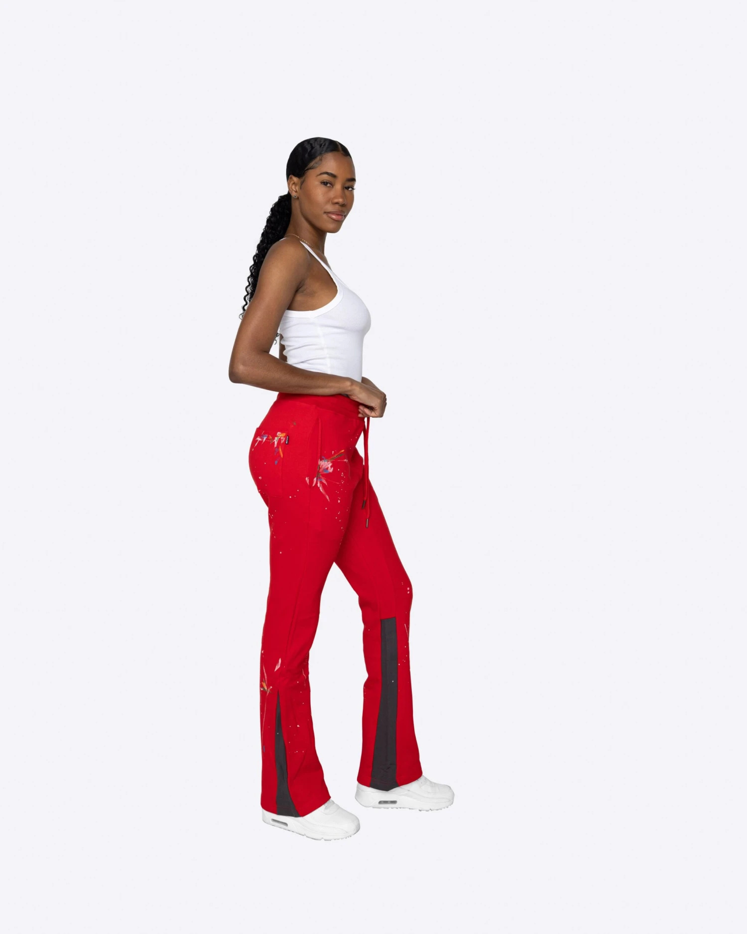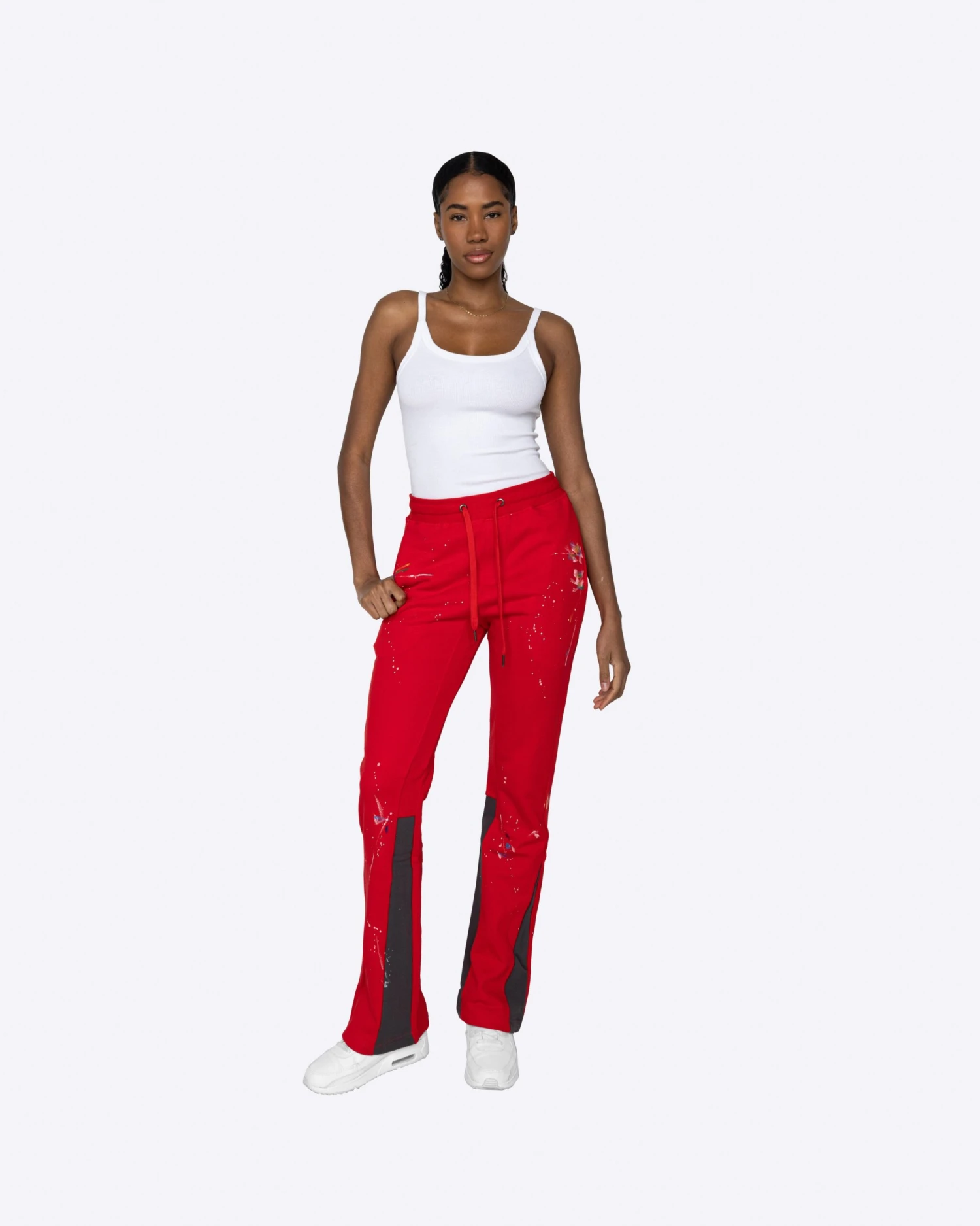 For The Showroom sweatpants. These Three-Tone French Terry Sweatpants feature a flared ankle with a contrast inseam panel. Inspired by vintage Jackson Pollock paintings, we went crazy with the paint brush – giving these a custom paint splatter unique to each pair. Made for the rebels and the artists.