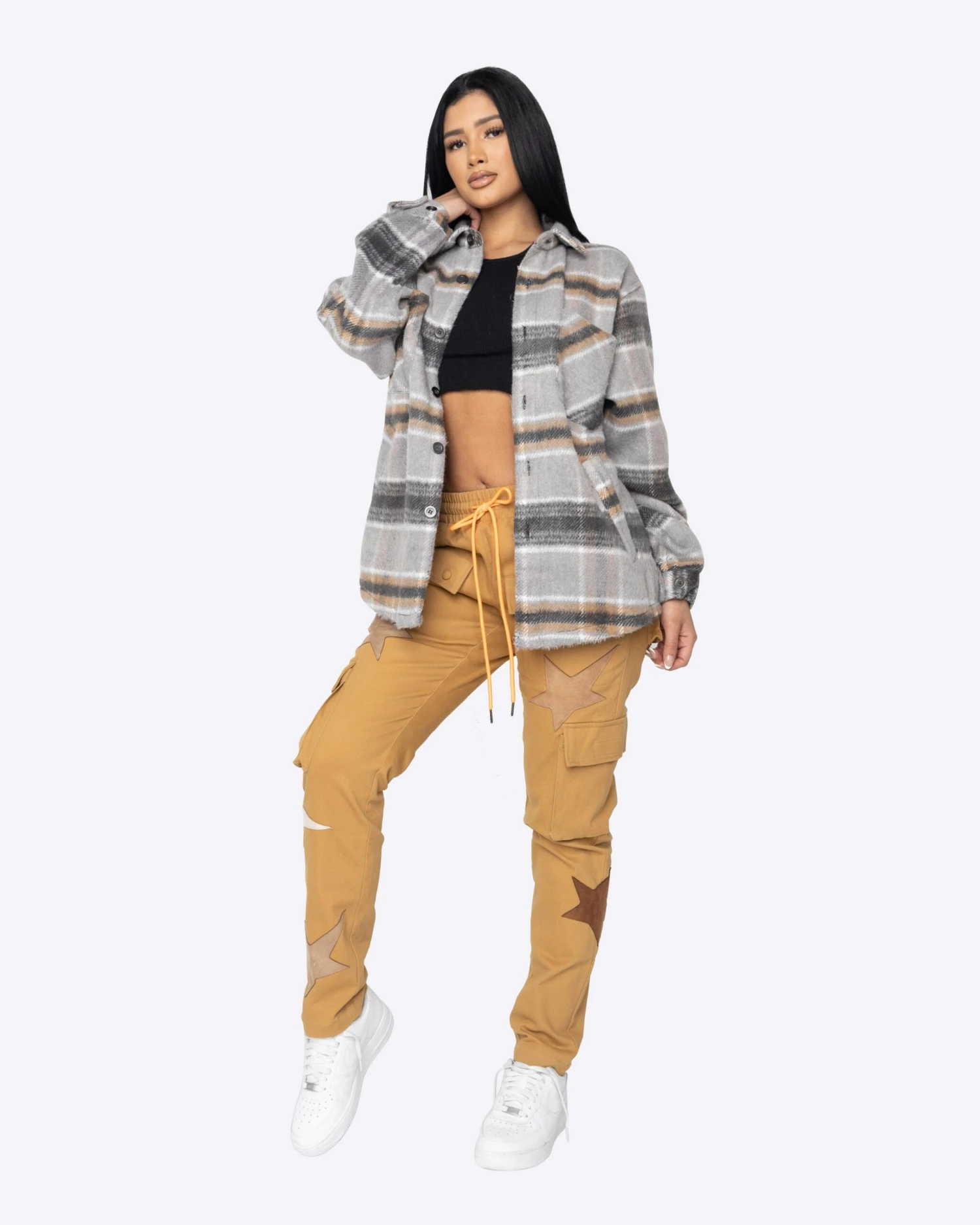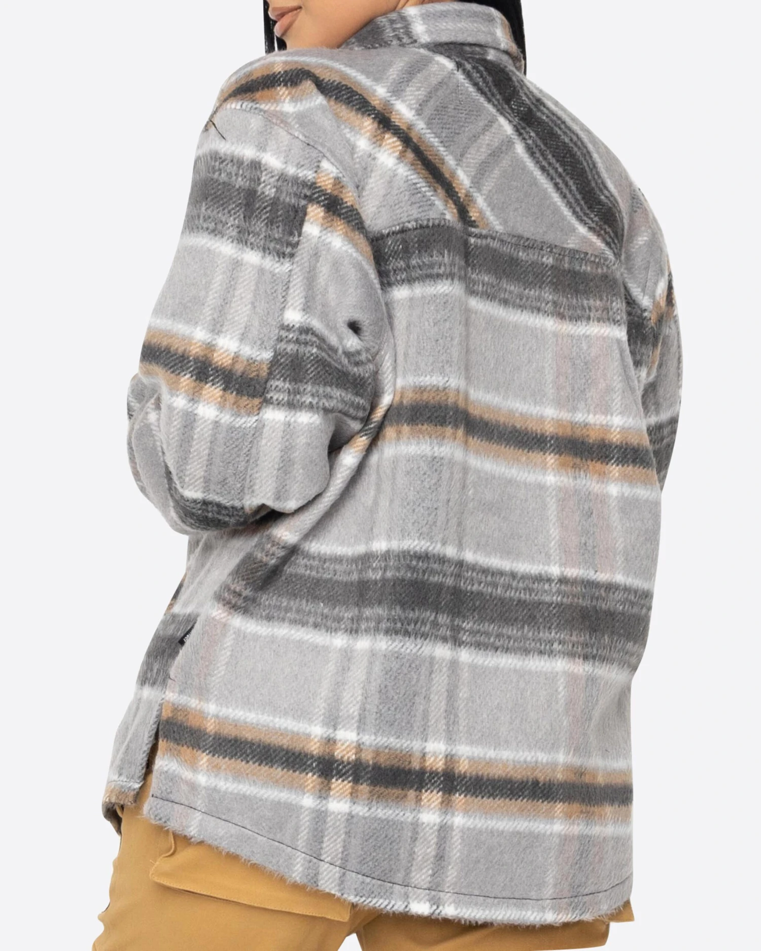 Our signature, heavy weight slit flannel. This slightly oversized flannel is perfect for wearing solo or layering over your favorite hoodie when it gets chilly. Featuring two chest pockets, two welt waist pockets, and side seam slit details.
