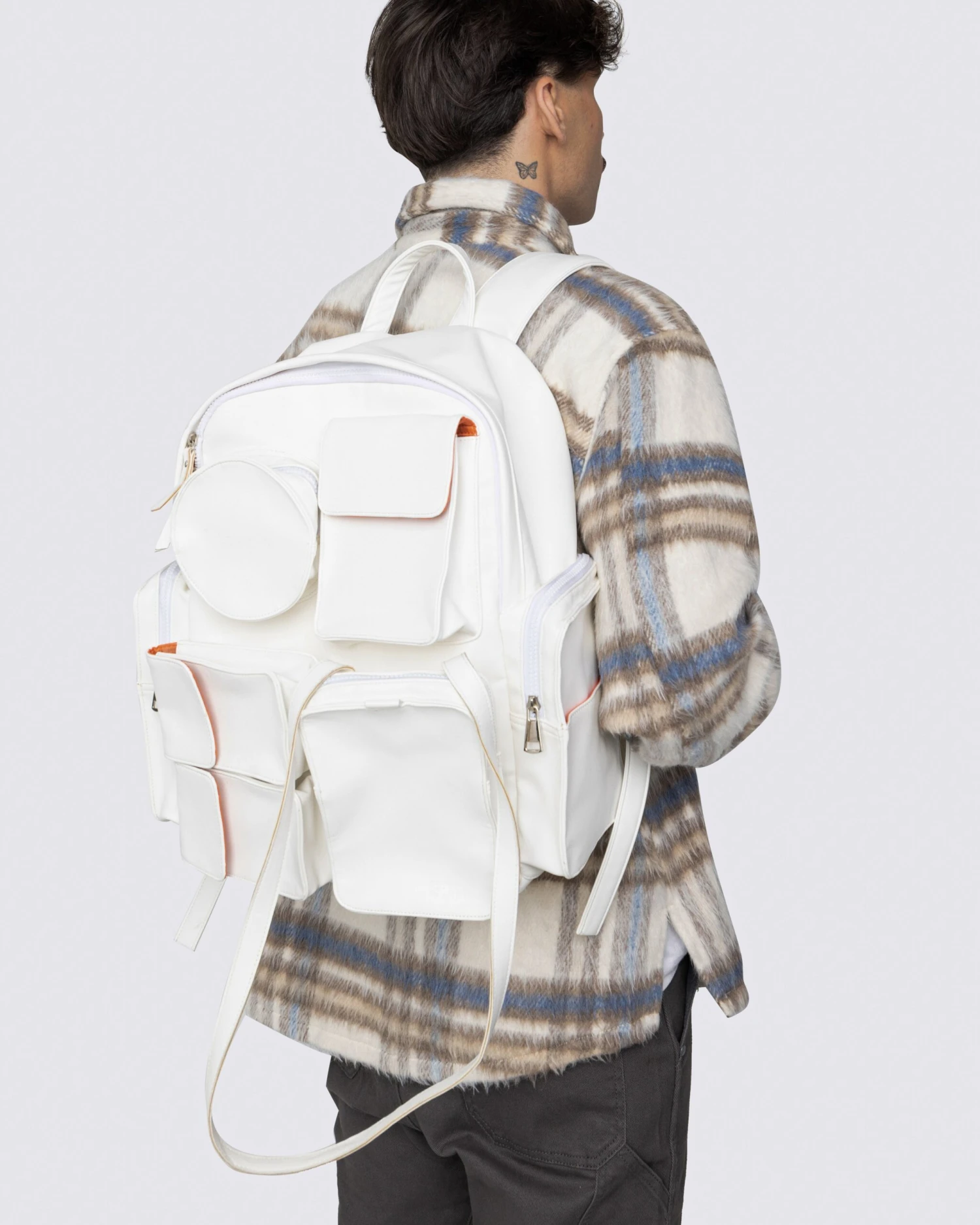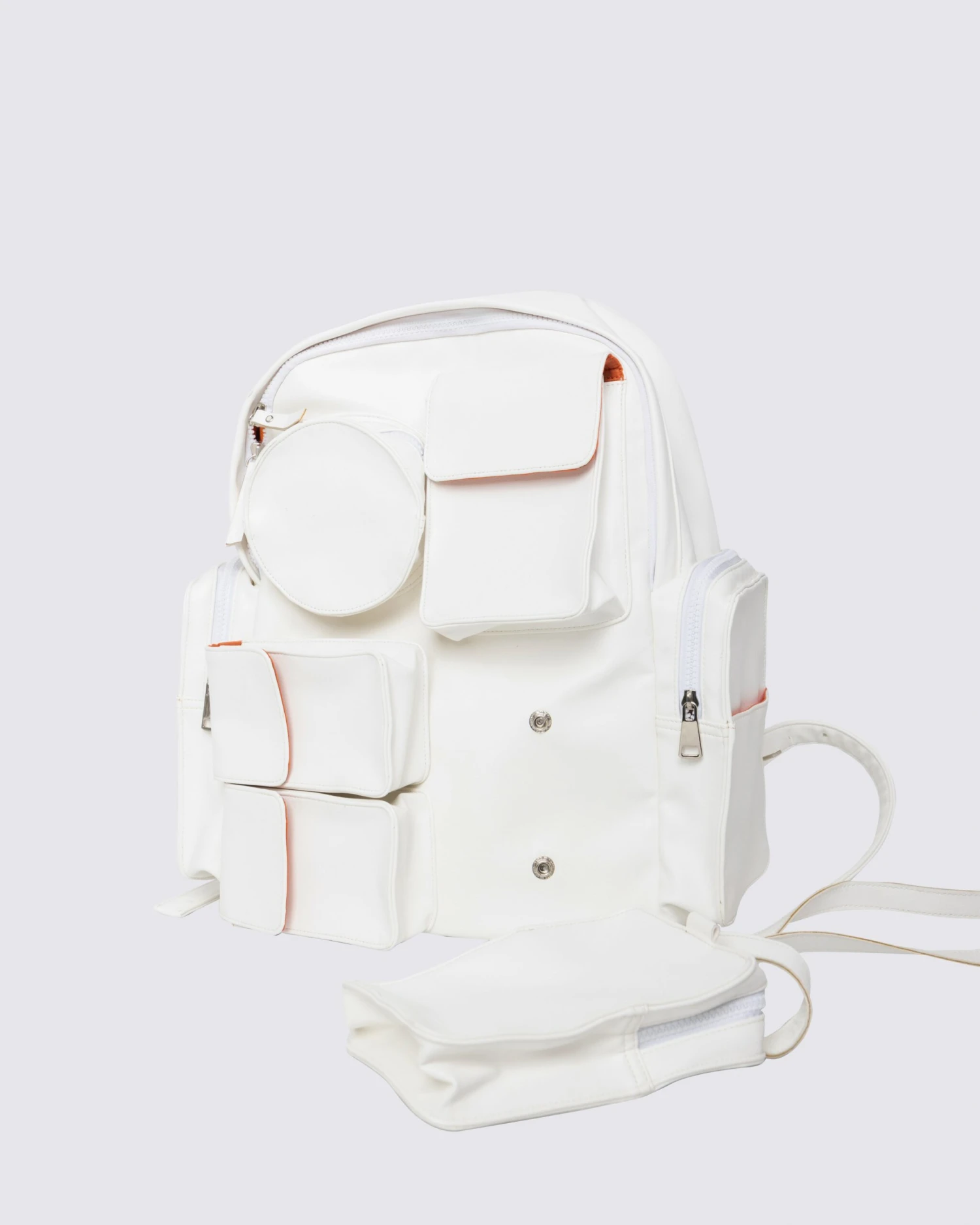 The one-of-one, modular backpack. Featuring multiple pockets and use options. The detachable bag can be worn on its own, attached to the back, or by the straps of the bag.